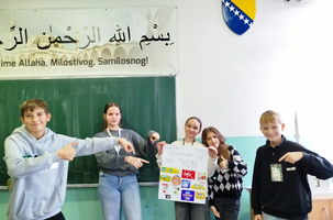 U okviru obilježavanja Dana državnosti naše Domovine i kampanje "Kupujem domaće-Bosansko" danas su našu školu posjetili predstavnici domaće firme za preradu i promet mlijeka i mliječnih proizvoda "NOĆKO" Živinice. Upoznali su učenike sa važnosti korištenja domaćih proizvoda kao i podrške domaćoj proizvodnji, jačanju lokalne privrede i na koncu naše domovine Bosne i Hercegovine.